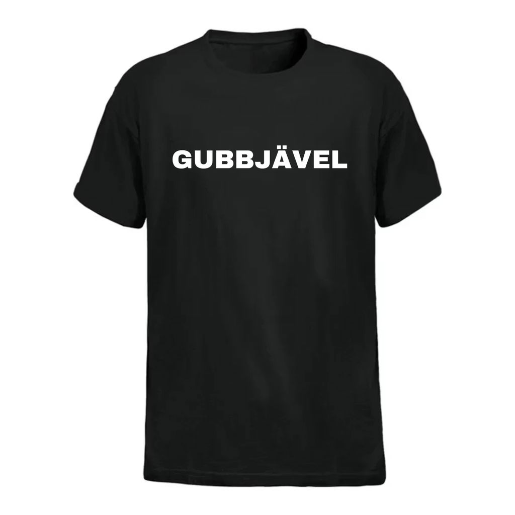 Beskrivning av GUBBJÄVEL GUBBJÄVEL T-SHIRT. Finns i storlekarna Small, Medium, Large och Extra Lagre. Tryck på framsida!