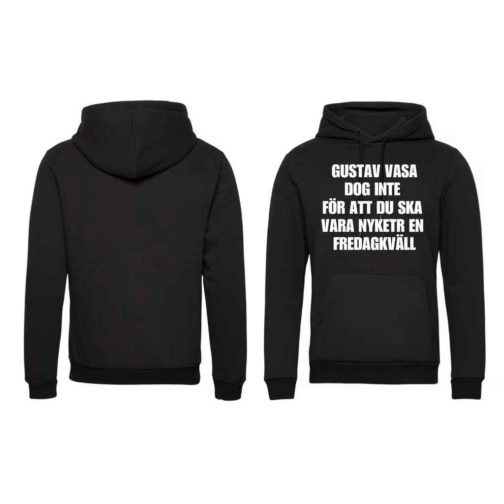 Beskrivning av Gustav Vasa Dog inte... Gustav Vasa Dog inte... Hoodie. Finns i storlekarna Small, Medium, Large, Extra Large Och Extra large. Tryck på Framsida!
