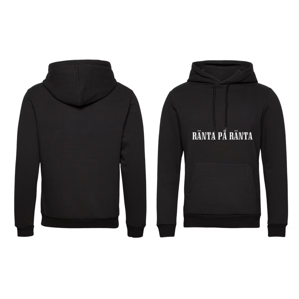 Svart Klassisk hood i sweatshirtkvalitet. Ficka framtill och huva med dragsko. Mudd i ärmar och nederkant. Vitt tryck på mage!