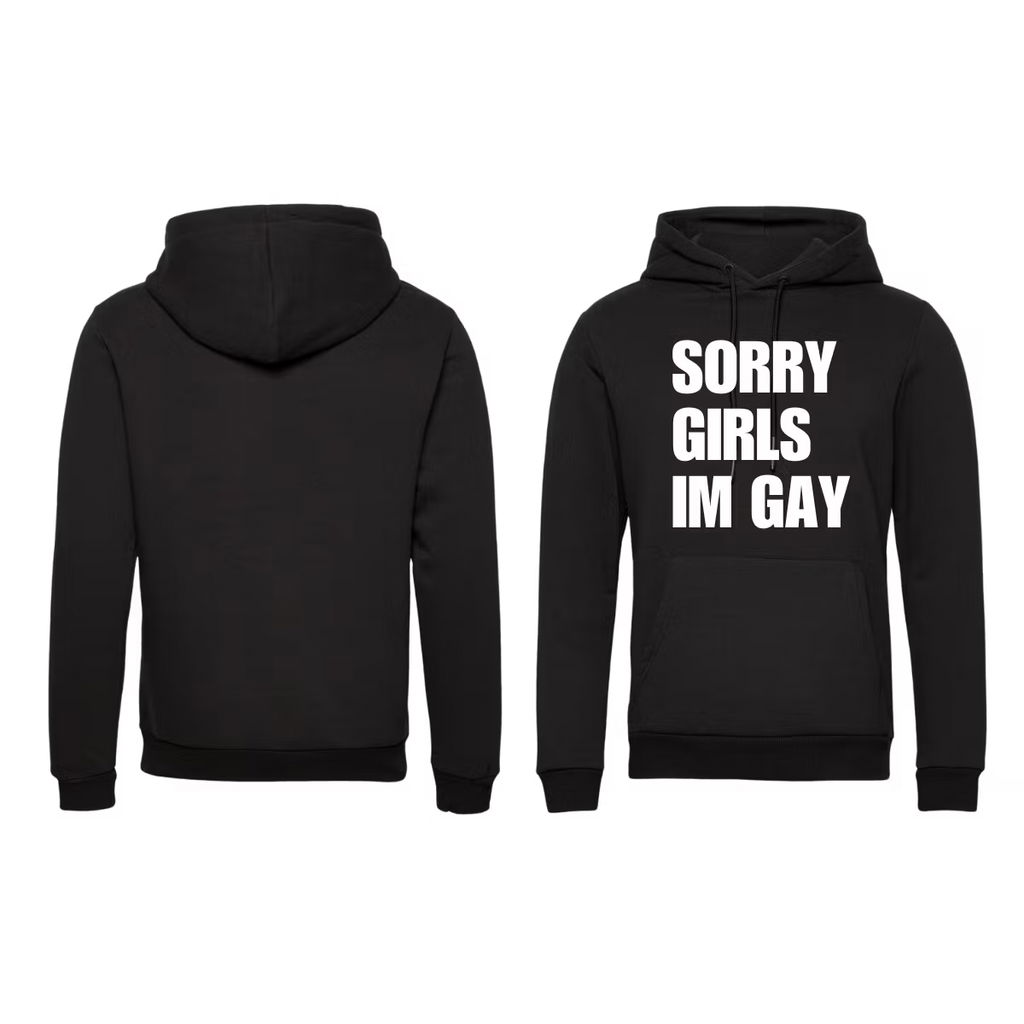 Sorry Girls im Gay Hoodie. Finns i storlekarna Small, Medium, Large, Extra Large Och Extra large. Tryck på Framsida!