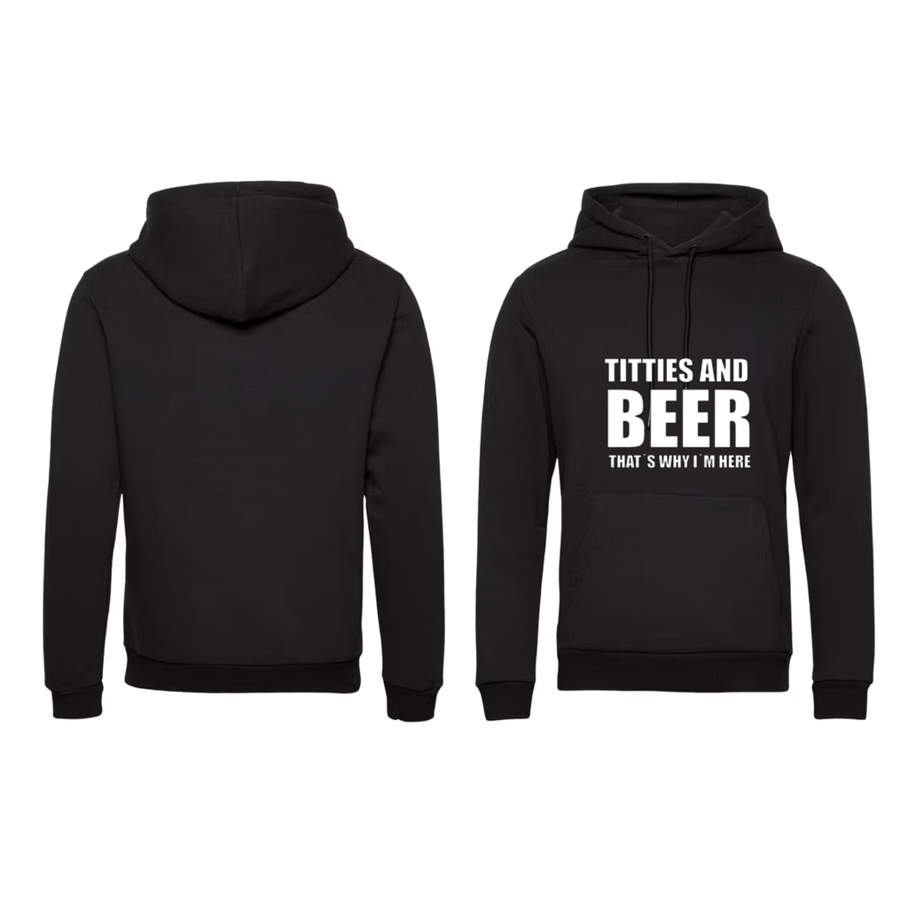 Beskrivning av Titties and Beer Hoodie